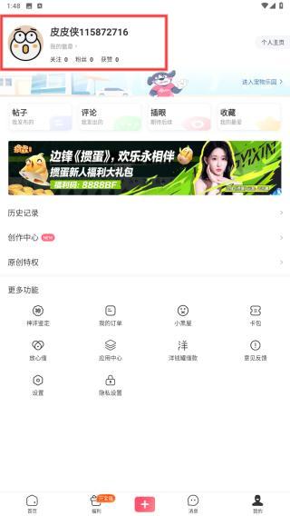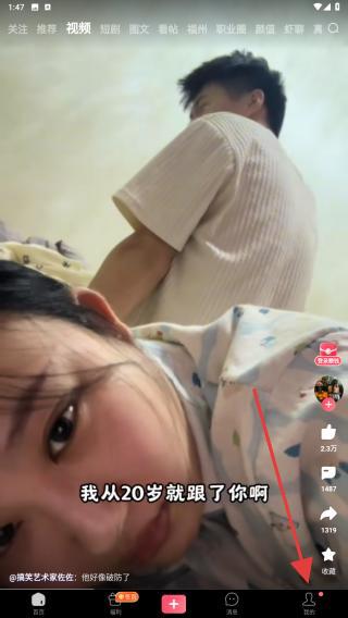 1、打开皮皮虾APP,用户需点击底部导航栏最右侧的我的。