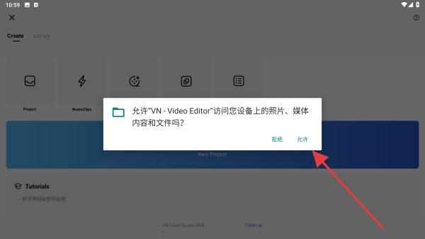 2、弹出权限请求时,点击允许,授予VN访问设备照片、媒体的权限。