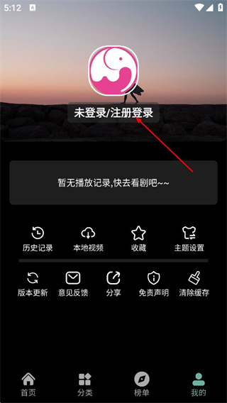 2、在个人中心页面,点击未登录/注册登录区域,进入登录页面。