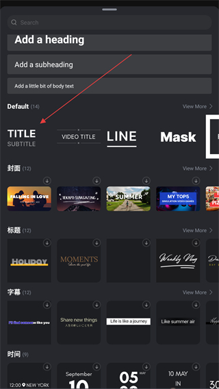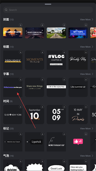 5、进入到字体的页面内,在字幕那栏中,选择并点击即可添加成功。