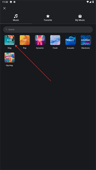 4、在音乐选择的界面内,选择并点击音频即可导入成功。