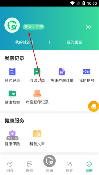 1、打开趣医院app,点击底部导航栏的我的选项。