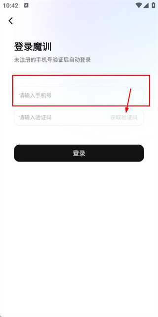 2、在手机号登录页面填写手机号后,点击获取验证码。