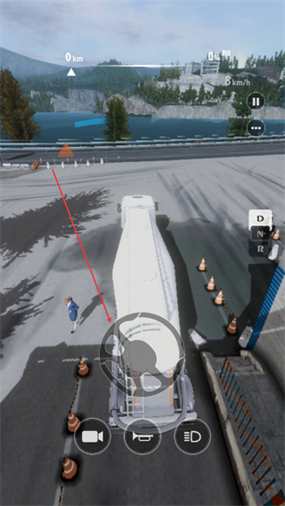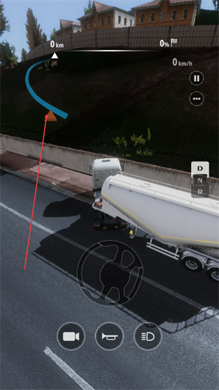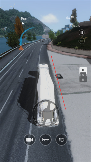 3、根据箭头指引调整方向,在公路上平稳驾驶,推进运输进度。