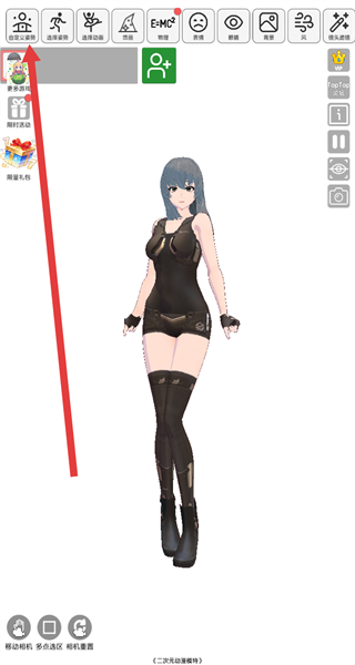 1、进入游戏后,点击左上角对应按钮,开启自定义姿势模式。