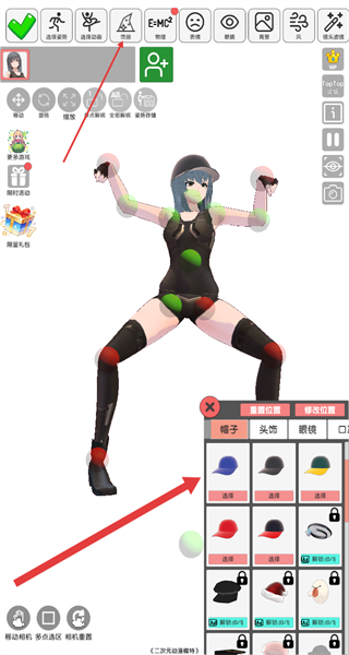 3、完成姿势调整后,选择装饰如帽子,搭配角色造型。