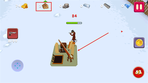3、在建造界面,消耗金币选择木材道具,点击右侧按钮解锁建筑,用于生产资源。