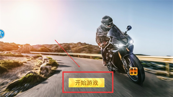 1、点击【开始游戏】按钮进入游戏,作为特技车手开启摩托车竞速挑战,做好准备应对复杂赛道。