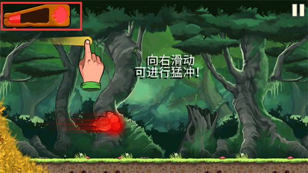 3、按提示向右滑动界面,触发【猛冲】技能,同时消耗上方的【能量条】资源来释放该技能。