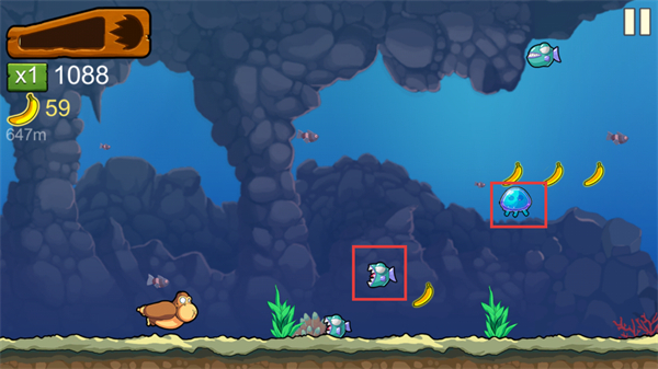 4、进入水下场景后,收集【香蕉】并躲避敌方单位。
