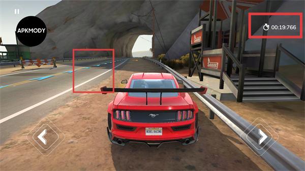 4、关注界面【00:19.766】的计时数据,操控赛车加速通过赛道区域,争取更优的竞赛成绩。