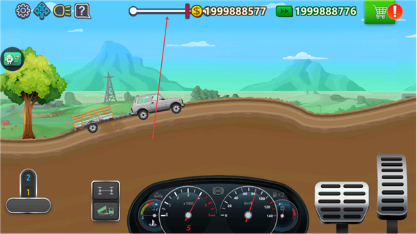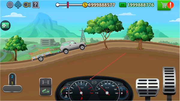 2、操控卡车在土道路行驶,通过油门刹车控速,避开路边树木保持稳定。