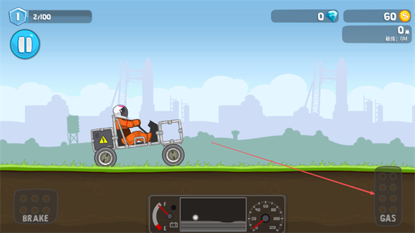 1、点击GAS键加速驾驶小车,在起伏赛道上行驶。