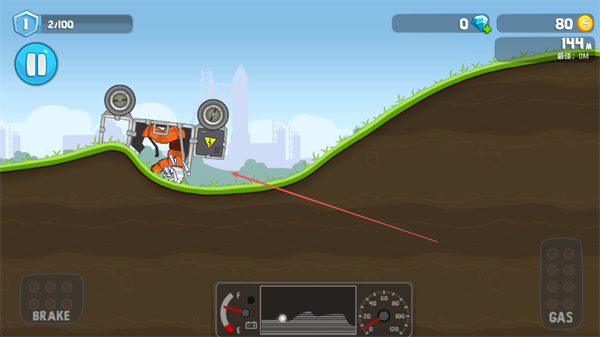 4、若车辆翻滚,可尝试调整操作恢复行驶,持续推进距离、积累金币。
