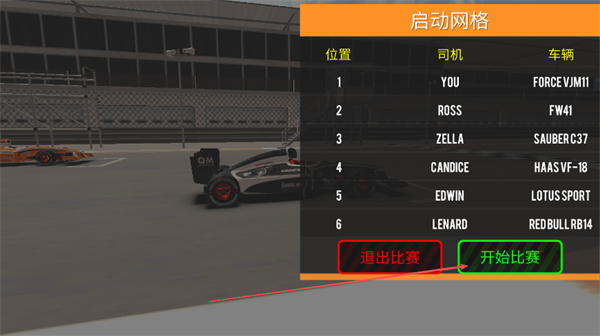 1、在启动网格界面点击开始比赛,以首位发车进入赛道竞速。