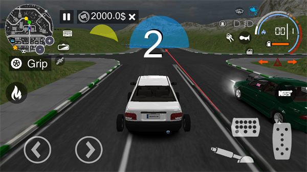 1、通过方向键和油门操控车辆,在赛道上行驶,注意避开其他车辆如绿色车辆。