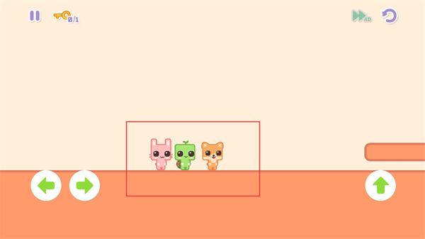 1、操作【→】按钮,控制三只小动物向右移动,靠近场景中的平台类机关道具。