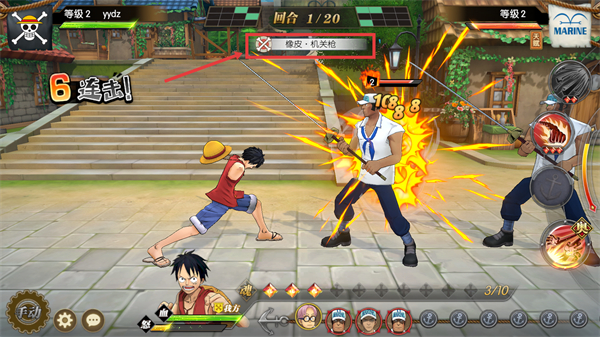 4、选择【橡皮-机关枪】技能发动,可对敌人造成多段伤害,还能提升当前的【连击】数。