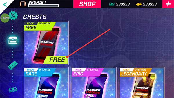 1、在抽卡界面,点击宝箱,可免费获取赛车相关的道具或资源。