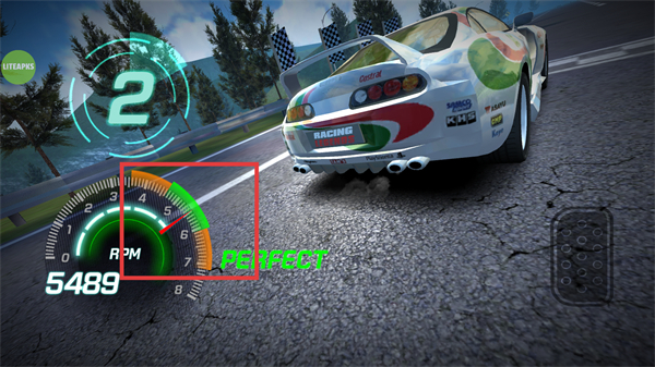 3、比赛中数值升至绿色提示,保持转速稳定以提升赛车的行驶表现。