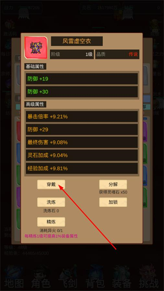 3、点击该装备,在弹出的详情界面中选择穿戴按钮。