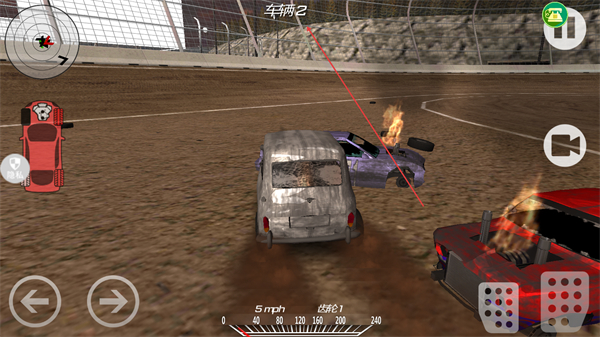 3、撞击敌方车辆使其损毁如紫色车起火,进一步巩固优势。