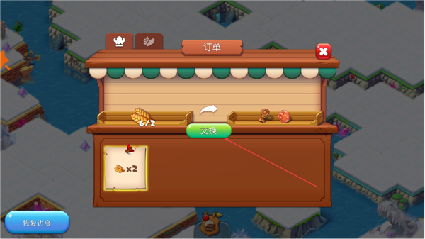 2、在订单界面提交2个小麦,点击交换获取对应物品。