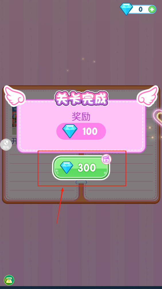 4、领取奖励,关卡完成后点击“300”领取你的奖励。