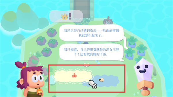 2、与【光剑】完成对话交互,点击场景中的选择框,推进剧情,明确寻找女王的冒险目标。