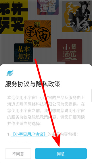 1、打开小宇宙,在弹窗中点击同意,进入登录选择界面。