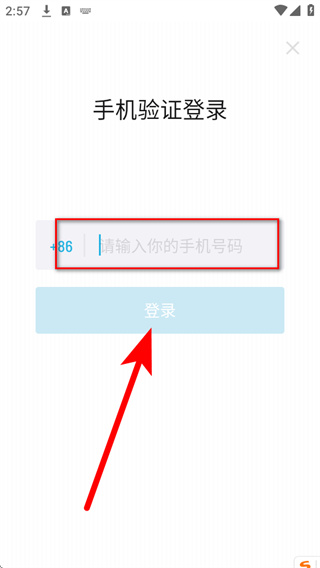 3、在手机验证登录页面的手机号码栏填写对应的手机号码,完成后触发验证码发送。