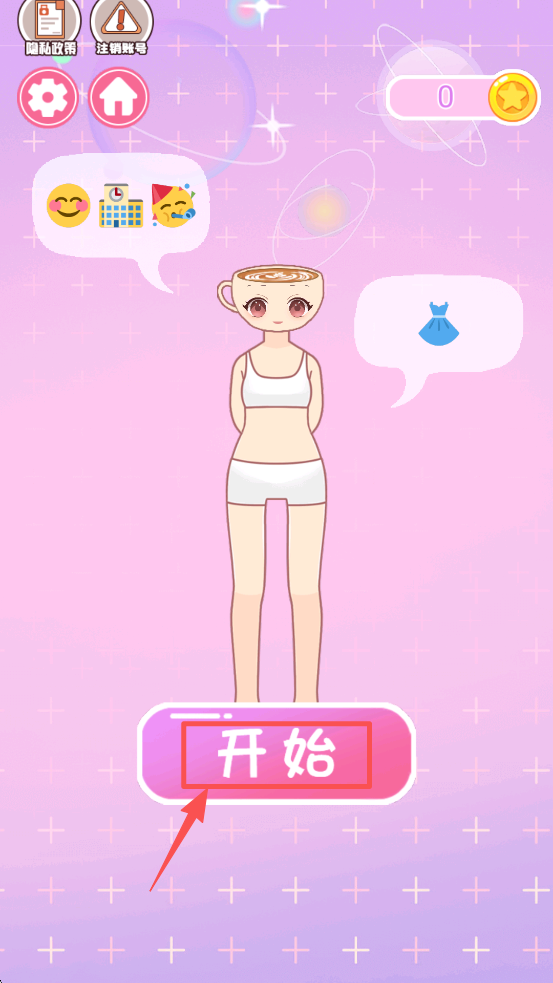 2、点击屏幕下方的“开始”按钮,进入游戏,开始你的时尚搭配之旅。
