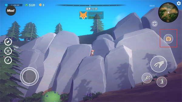 3、遇到【狐狸】类生物时,点击照相机,开始任务。