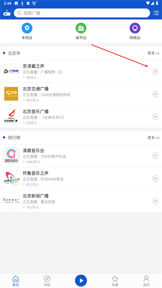 5、自动定位并显示本地电台,让你自由畅听本地的声音;