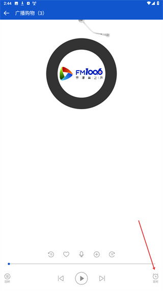 2、进入播放的页面内,点击右下方定时的功能按钮。