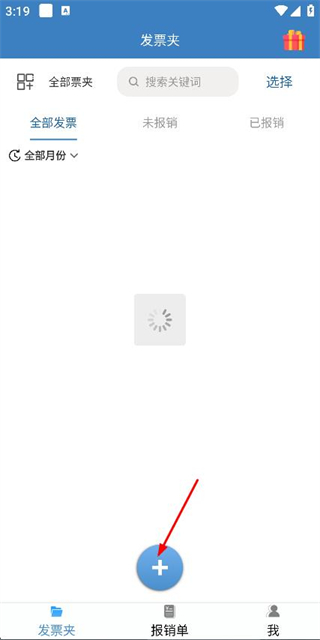 1、在发票夹页面点击底部的加号按钮,弹出录入方式选择菜单。