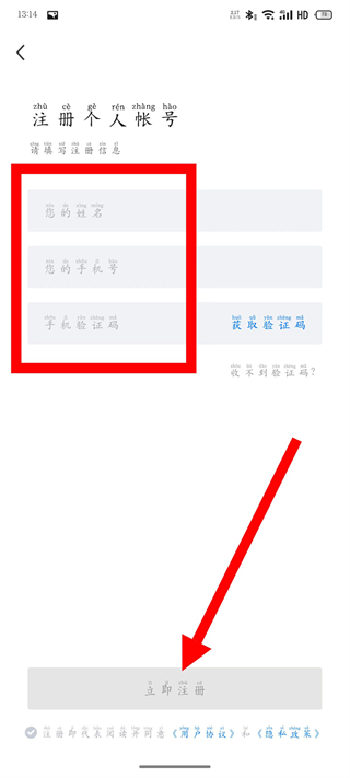 5、在注册个人账号页面,输入手机号和机验证码,点击立即注册,完成账号注册。