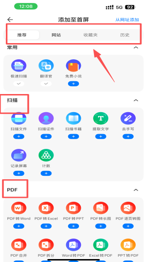 3、在添加至首页界面,点击“推荐”分类,找到并选择所需的翻译工具。
