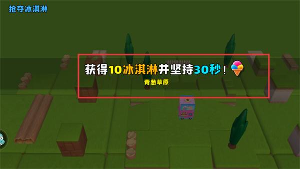 1、在【青葱草原】场景,需完成【获得10冰淇淋并坚持30秒】的关卡目标,先寻找冰淇淋道具收集。