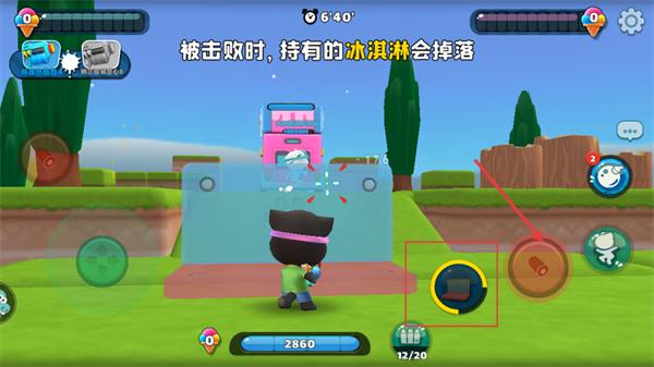 3、利用右侧的道具按钮使用道具,注意【被击败时,持有的冰淇淋会掉落】的规则,避免丢失道具。