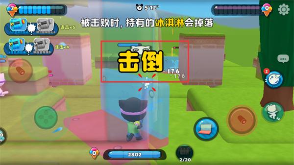 4、成功攻击对手后触发【击倒】提示,此时可拾取对手掉落的冰淇淋,快速积累道具数量。