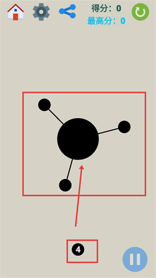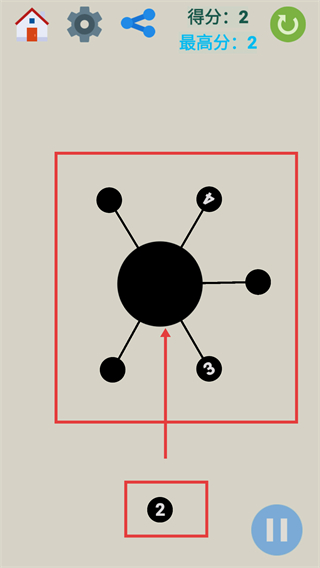 3、游戏过程中【得分-2】【最高分-2】,根据底部红框的【2】,操作红框内的对应区域,继续累积游戏得分。