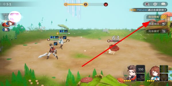 1、进入战斗场景后,开启自动技能功能,角色会自动发起攻击,推进当前关卡的战斗进度,无需手动操作技能释放。