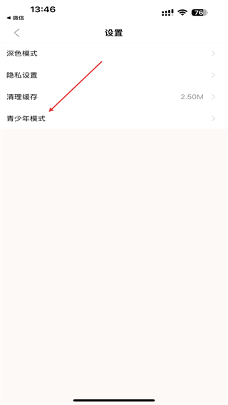 3、在设置的页面内,点击青少年模式的按钮。