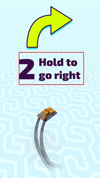 2、观察屏幕提示,长按对应区域,控制车辆向右侧行驶,跟随道路的弯道轨迹移动。