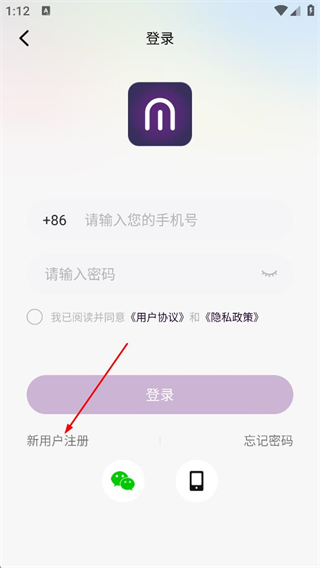 2、在登录页面,点击新用户注册的选项,即可进入注册的页面。