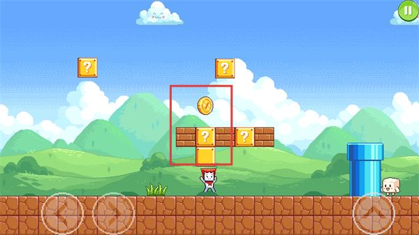 2、操控角色跳跃触碰空中的【?】方块,触发方块效果,可能获得道具或金币助力通关。