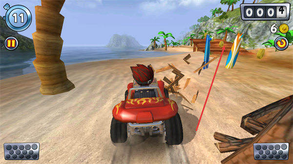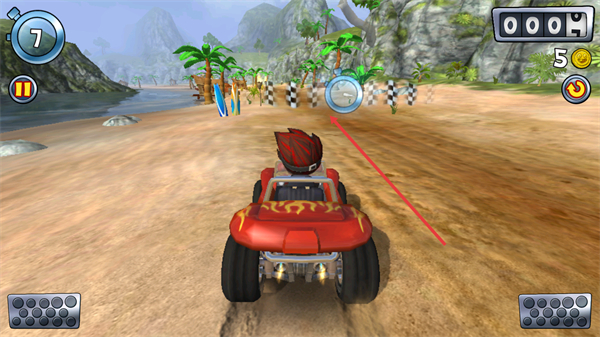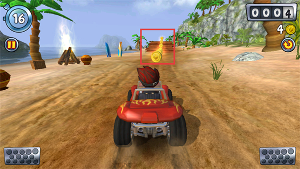 1、在沙滩赛道驾驶车辆时,优先靠近路径上的【金币】,连续收集能提升得分效率且保持行驶节奏。
