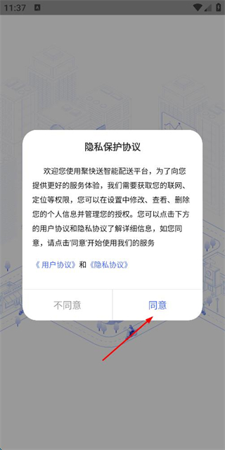 1、在用户协议隐私政策弹窗中点击同意按钮,进入登录页面。