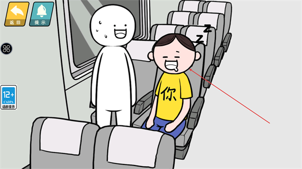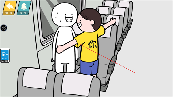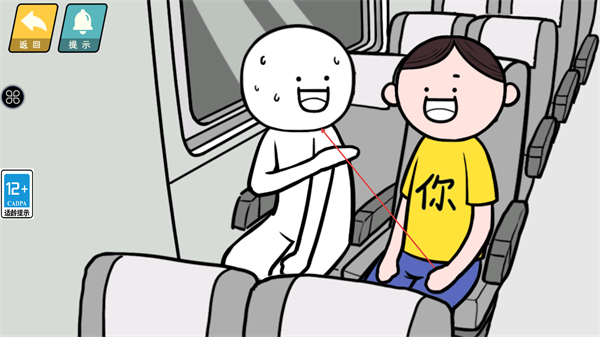 1、在车厢场景中与白色人物互动,触发互动动作,推进关卡剧情。